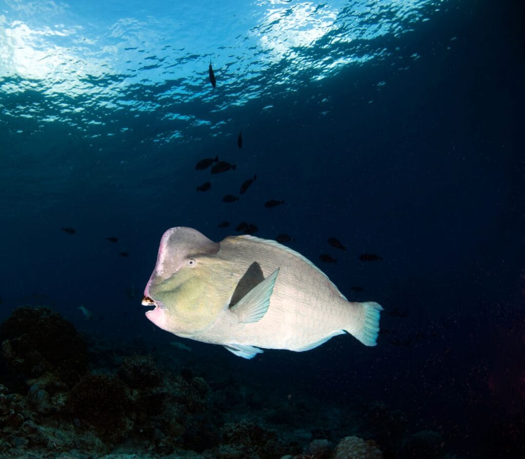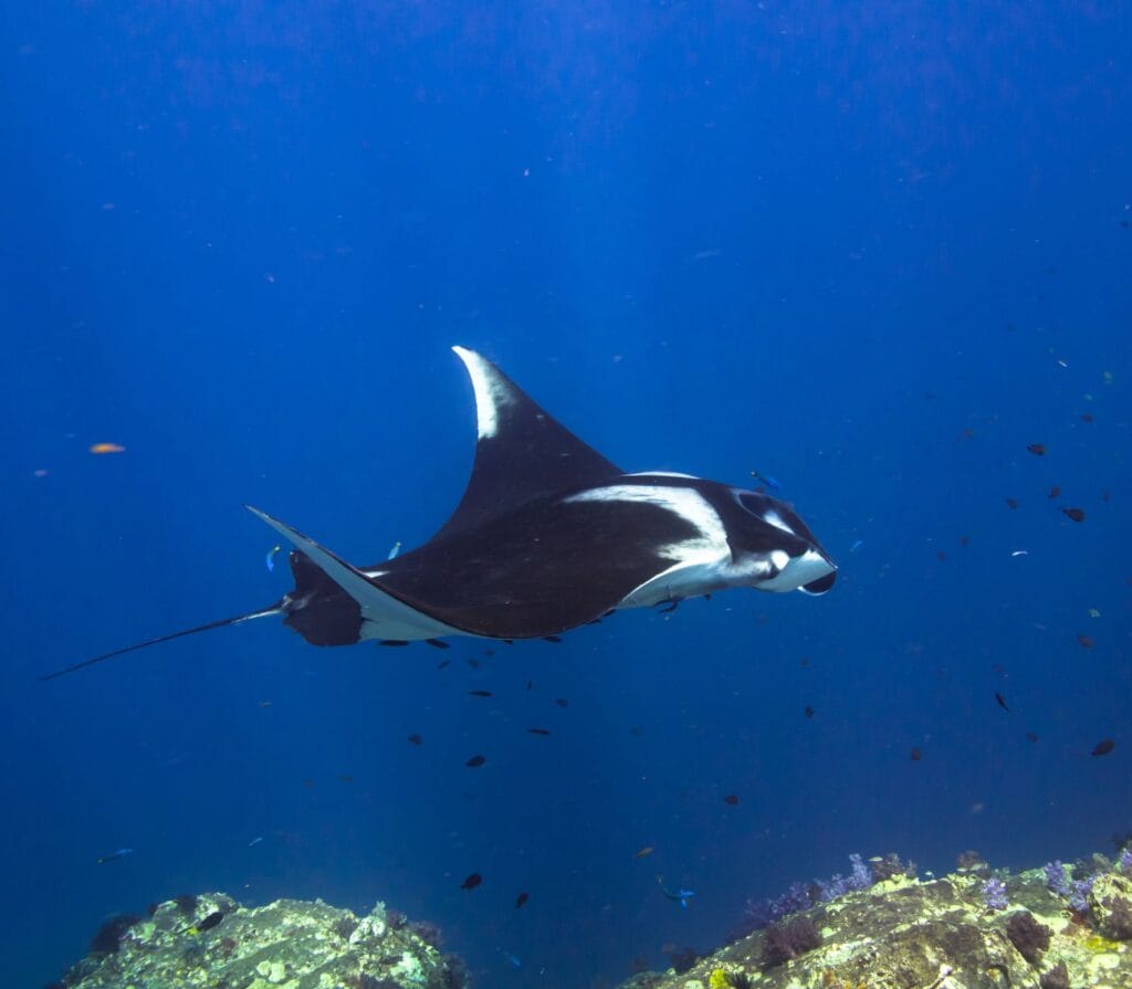 This 4-meter pinnacle is a hotspot for fish. Trevallies and rainbow runners feed in spirals, sometimes joined by oceanic manta rays (July-September). Dive in the afternoon for the best light and photos.