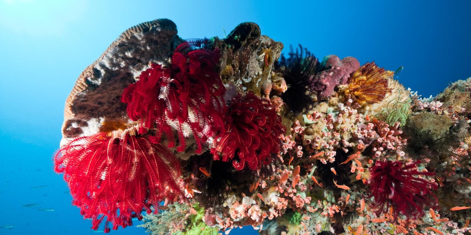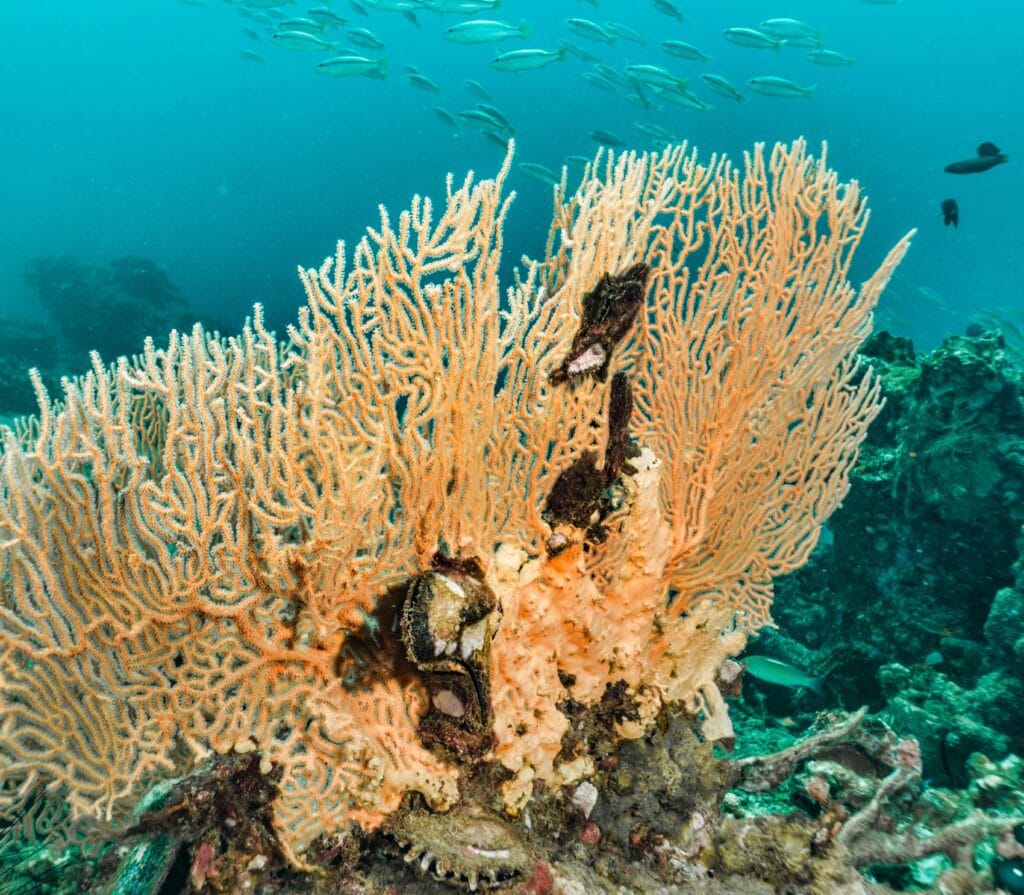 Mauan’s eastern coast is perfect for muck diving. Wae Nilo’s black sand slopes are home to mimic octopuses. Secret Garden’s seagrass beds hide ornate ghost pipefish. Night dives here show bobtail squid and Coleman shrimp.