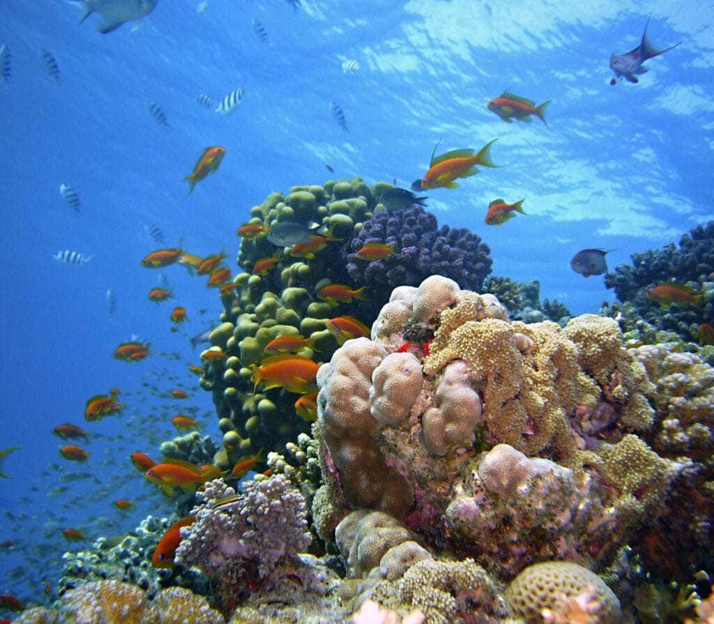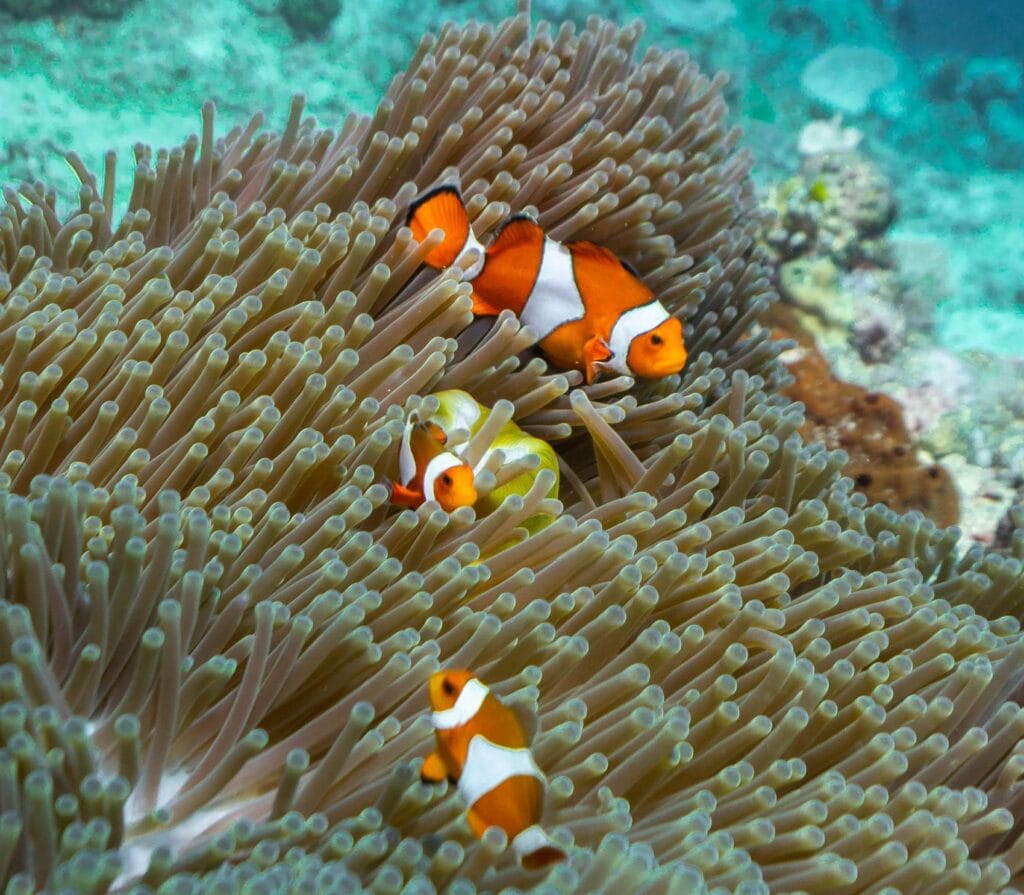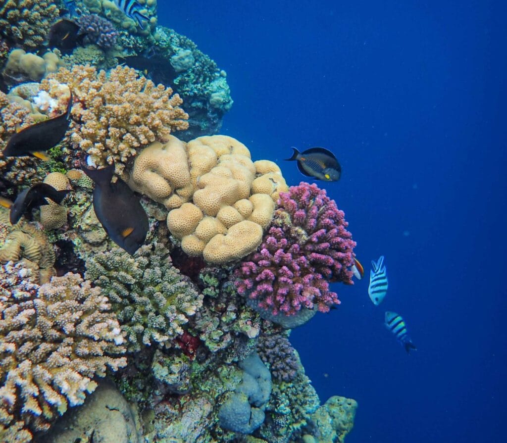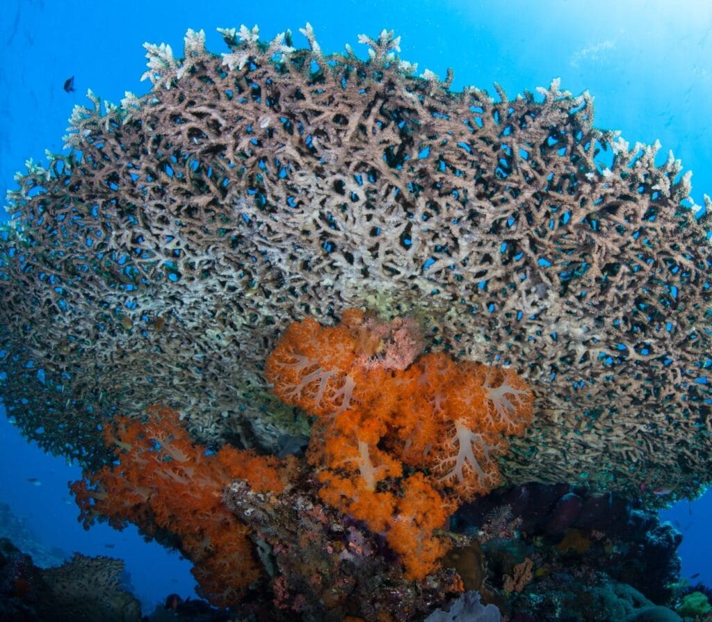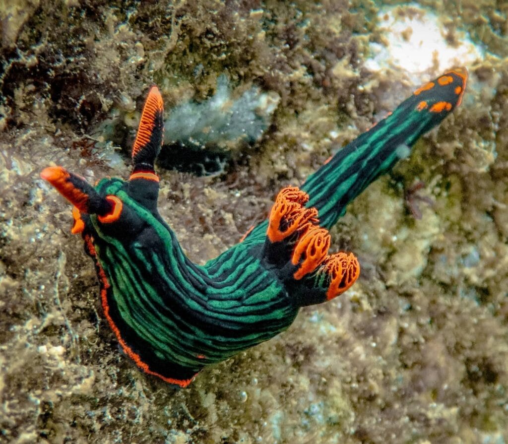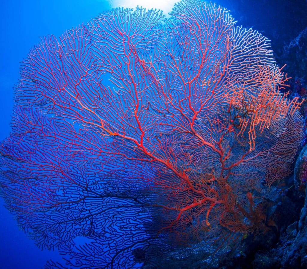 The main attraction here isn’t just the beach’s color, it’s the thriving coral gardens 15-30m below. Schools of fusiliers dart through table corals shaped like giant lily pads. Blacktip reef sharks patrol the outer edges. Night dives reveal a transformed world where Spanish dancers glide across the pink-tinged sand.