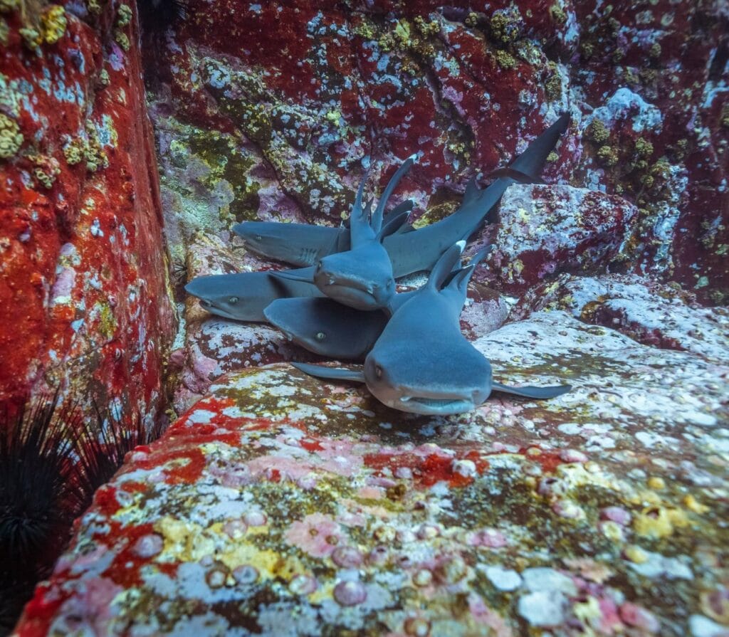 At Magnet, dive down the 80m granite pinnacle where four currents meet. At 30m, you’ll find thermoclines that signal hammerhead sharks. Key things to see: