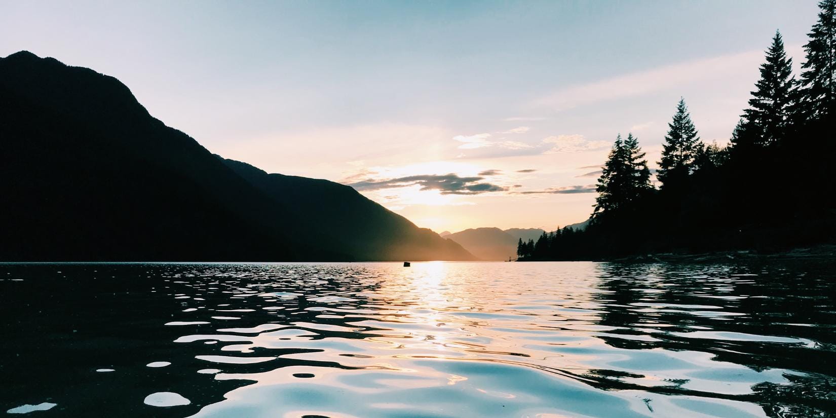 Calm waters under soft lights.